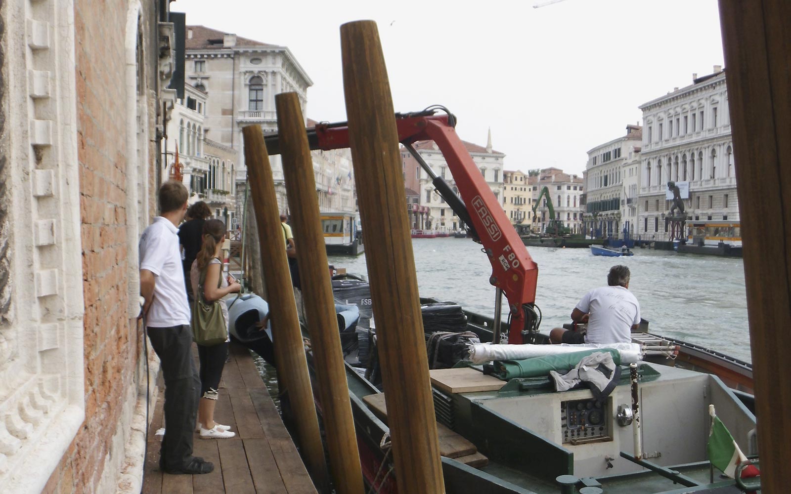 Wieder mussten alle Möbelteile mit Krangondeln über den Canale