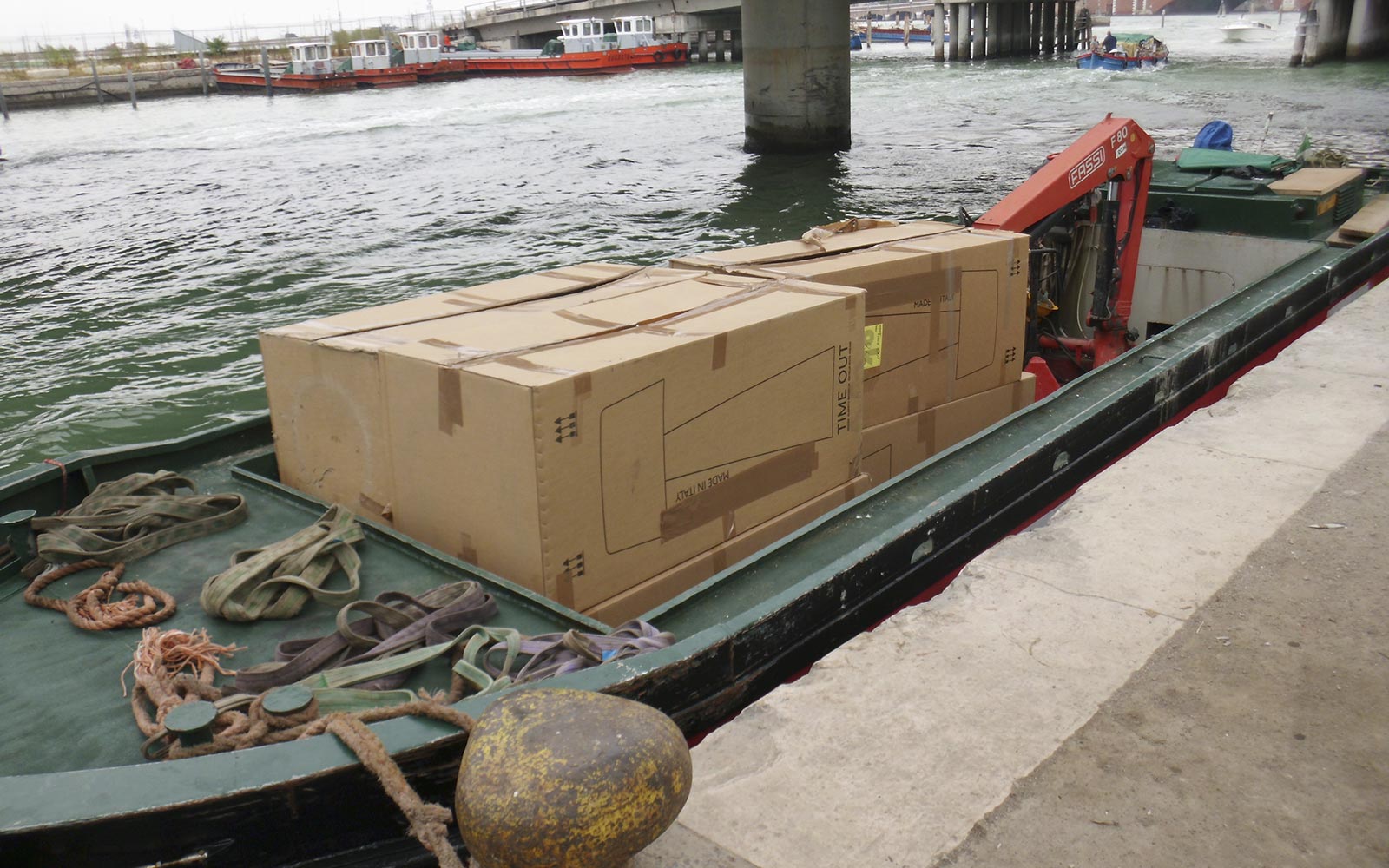 im Hafen von Venedig auf eine spezielle Schwerlastgondel